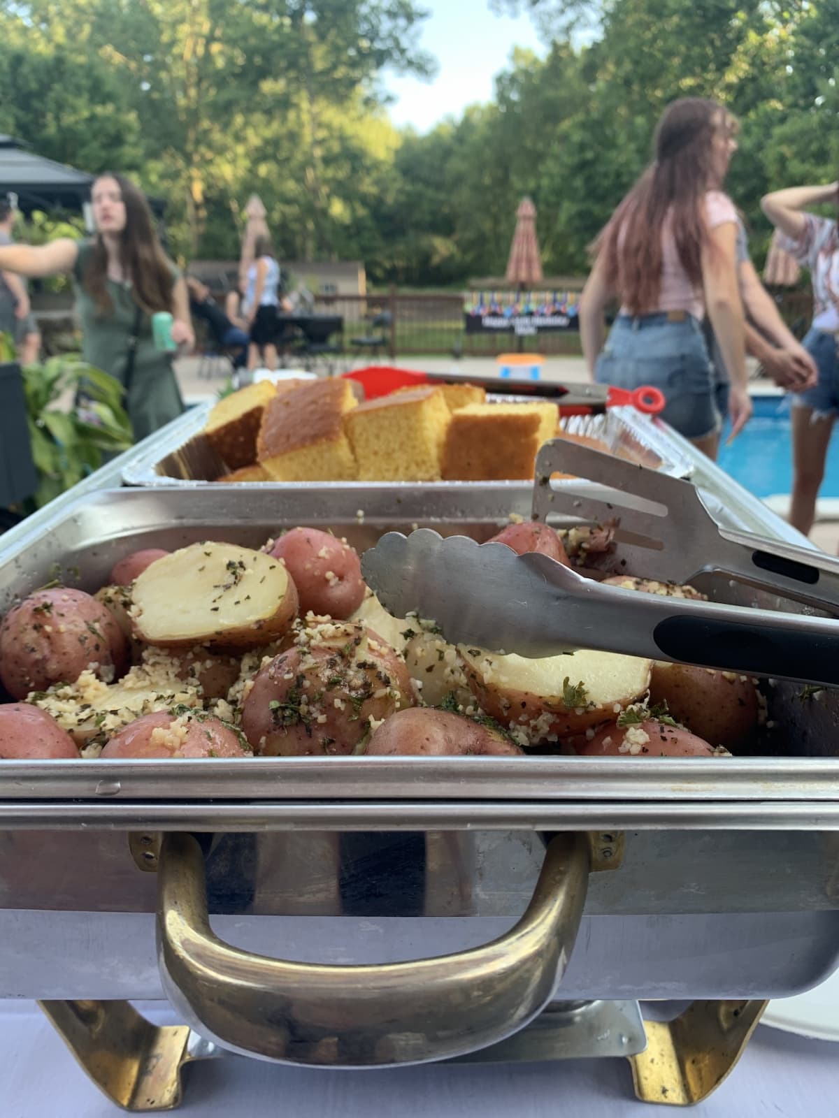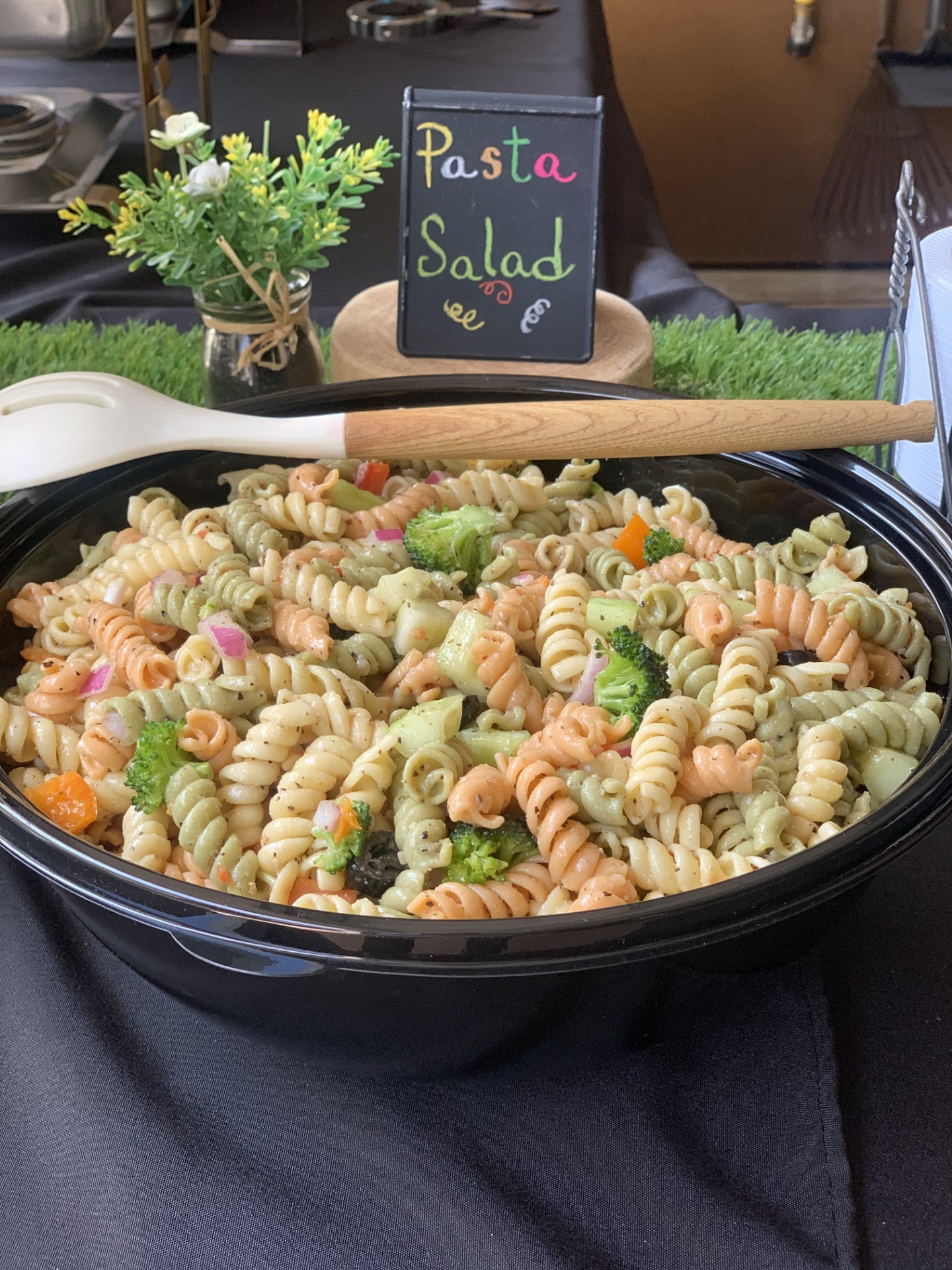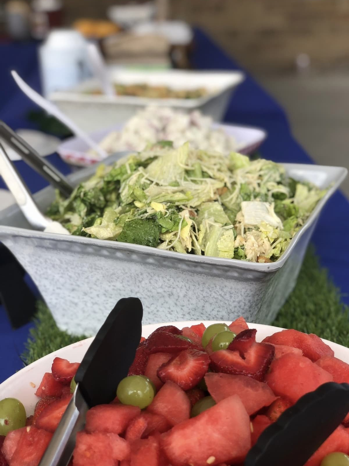 *Garlic Redskins * Potato Salad * Fruit Salad* Fresh Vegetable* Coleslaw* Sriracha Coleslaw* Chuckwagon Baked Beans* Buttered Sea Salt Corn on the Cob* Mac Attack n Cheese* Pasta Salad* Watermelon Triangles* Strawberry Salad*